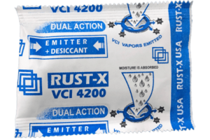 Description : Rust-X® VCI Emitter 4200 emitters are unique devices designed to provide corrosion protection for metal components and parts enclosed in non-ventilated control boxes, cabinets or tool boxes up to 5 cubic feet in volume. The VCI (Volatile Corrosion Inhibitor) emits vapors that absorb as molecular layers on metal surfaces to protect critical, complex and expensive electronic equipment and other metal components during operation, shipping or storage. VCI Emitter 4200 is a small, emitter with a breathable synthetic pouch membrane through which the corrosion inhibitor is released. It provides long-term protection against corrosion even in the presence of adverse conditions including salt, moisture, airborne contaminants, H2S, SO2, NH3 and others.